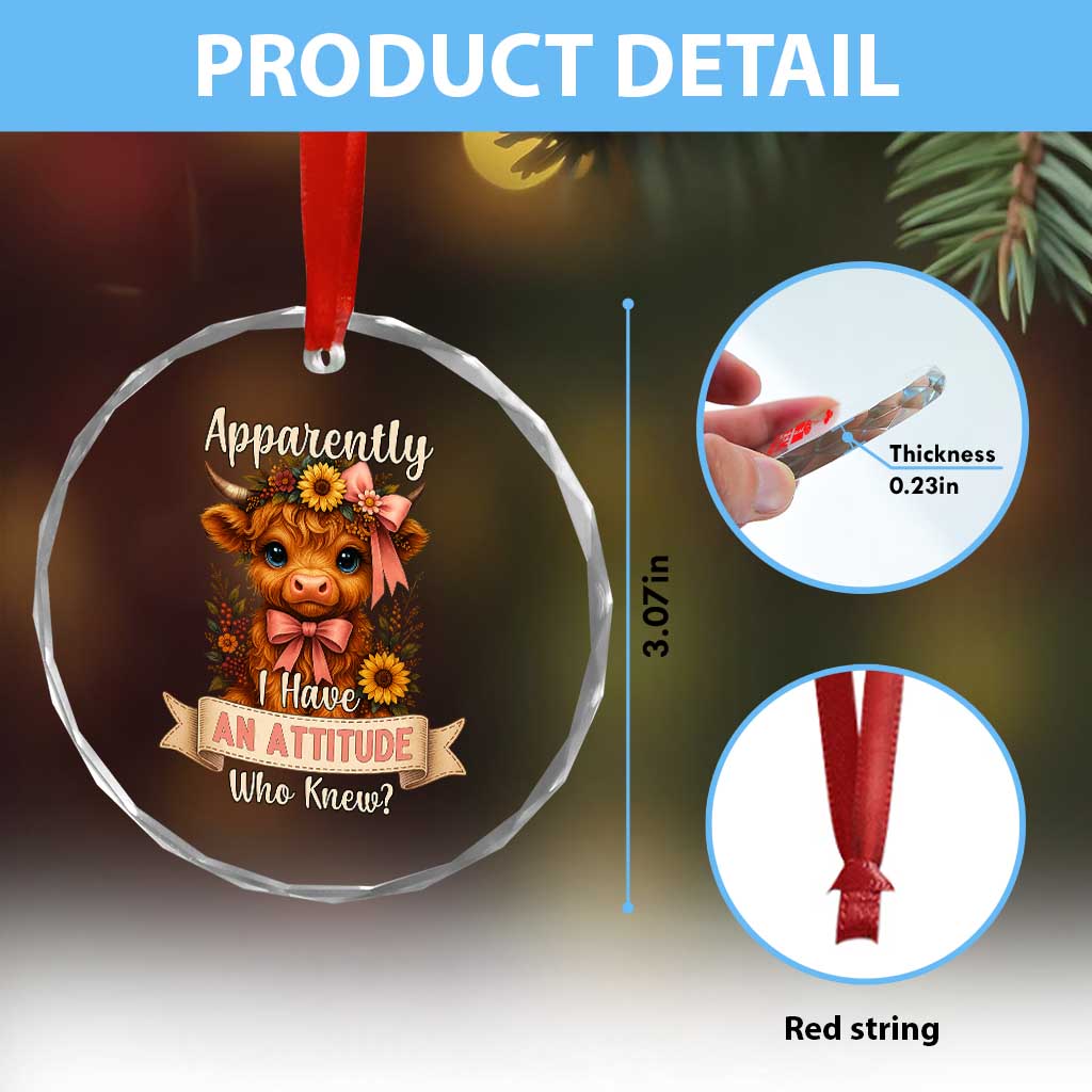Apparently I Have An Attitude Who Knew Crystal Glass Ornament Funny Sarcasm Highland Cow