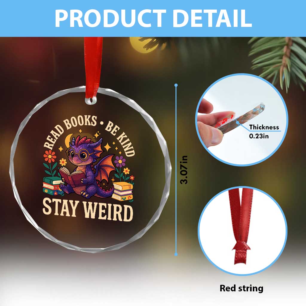 Dragon Read Book Crystal Glass Ornament Funny Read Books Be Kind Stay Weird