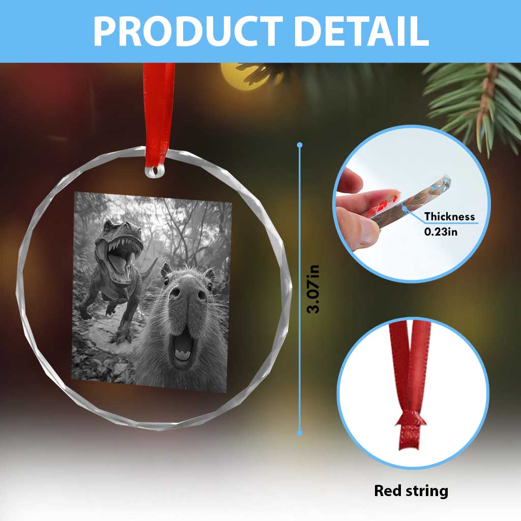 Funny Capybara Selfie With Dinosaur Meme Crystal Glass Ornament Animal Humor Gift TS12