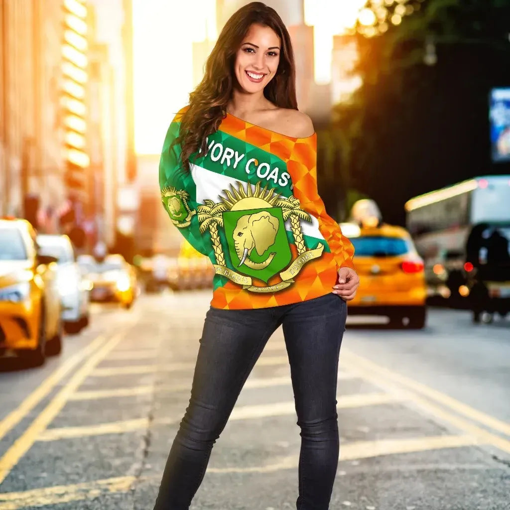 Ivory Coast Women Off Shoulder Sweater Sporty Style RLT7