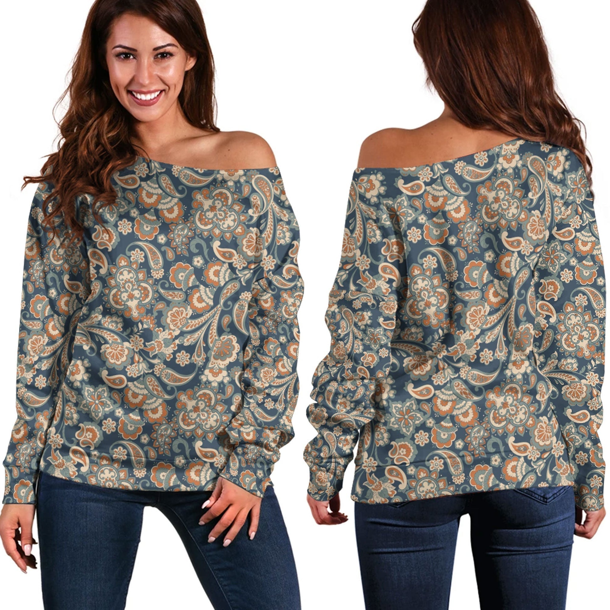 Paisley Bandana Pattern Seamless Off Shoulder Sweaters Ver.06 RLT13