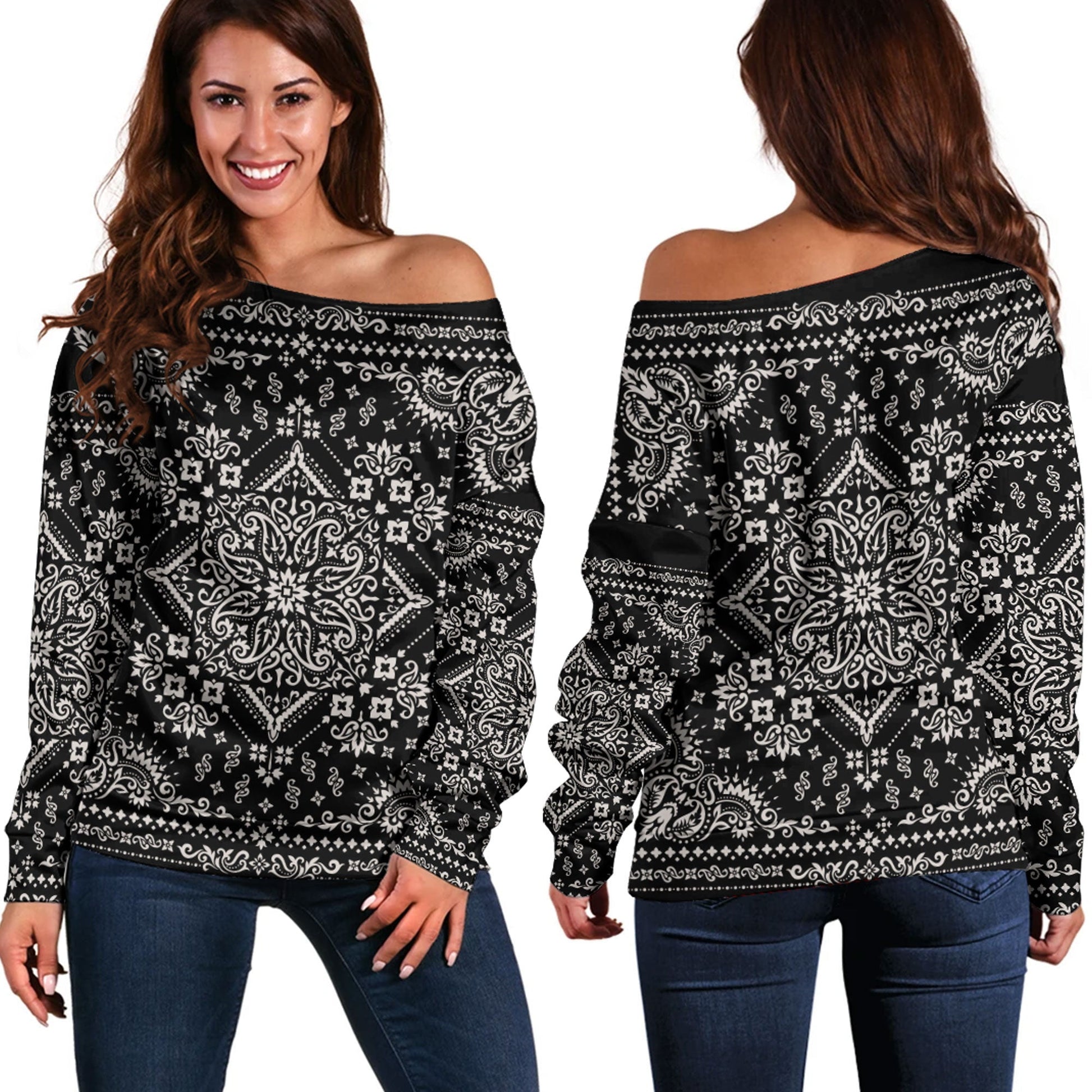 Paisley Bandana Pattern Seamless Off Shoulder Sweaters Ver.07 RLT13