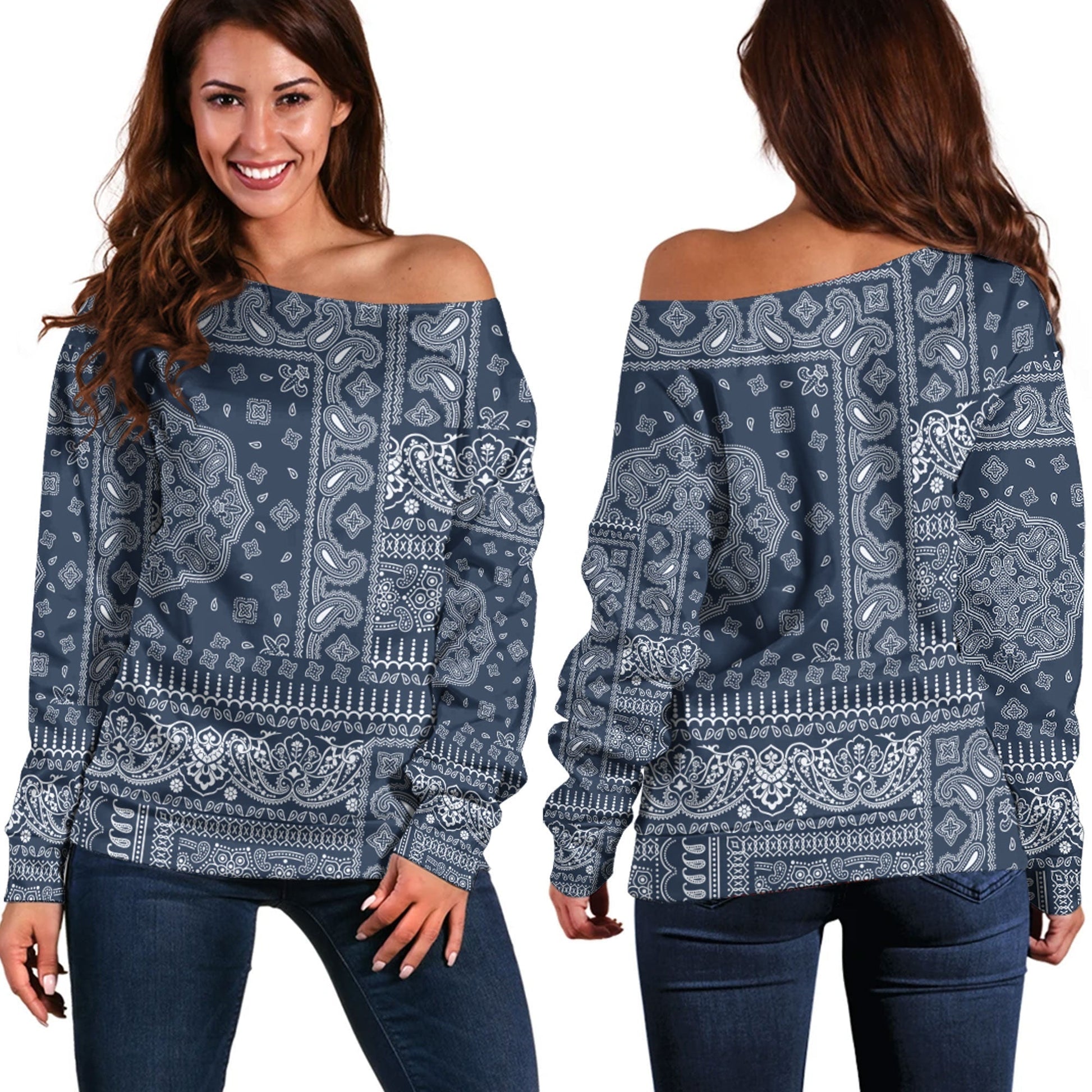 Paisley Bandana Pattern Seamless Off Shoulder Sweaters Ver.108 RLT13