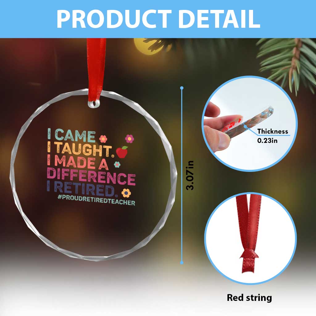 Proud Retired Teacher Crystal Glass Ornament I Came I Taught I Made a Difference Retirement