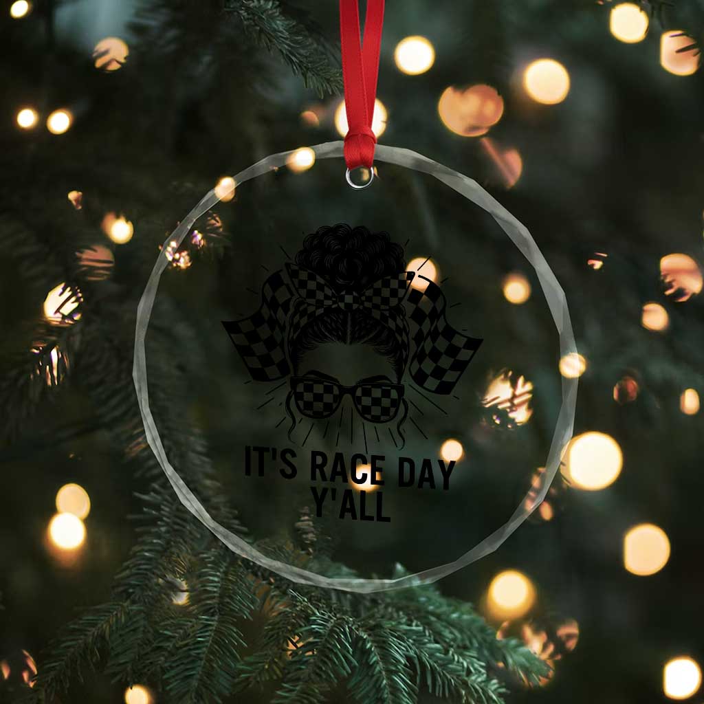 Discover the perfect blend of elegance and durability with the Racing Car Checkered Flag Crystal Glass Ornament Messy Bun Woman Race Day from Wonder Print Shop. Designed for those who appreciate meaningful keepsakes, this glass ornament enhances both personal spaces and gifting moments.
