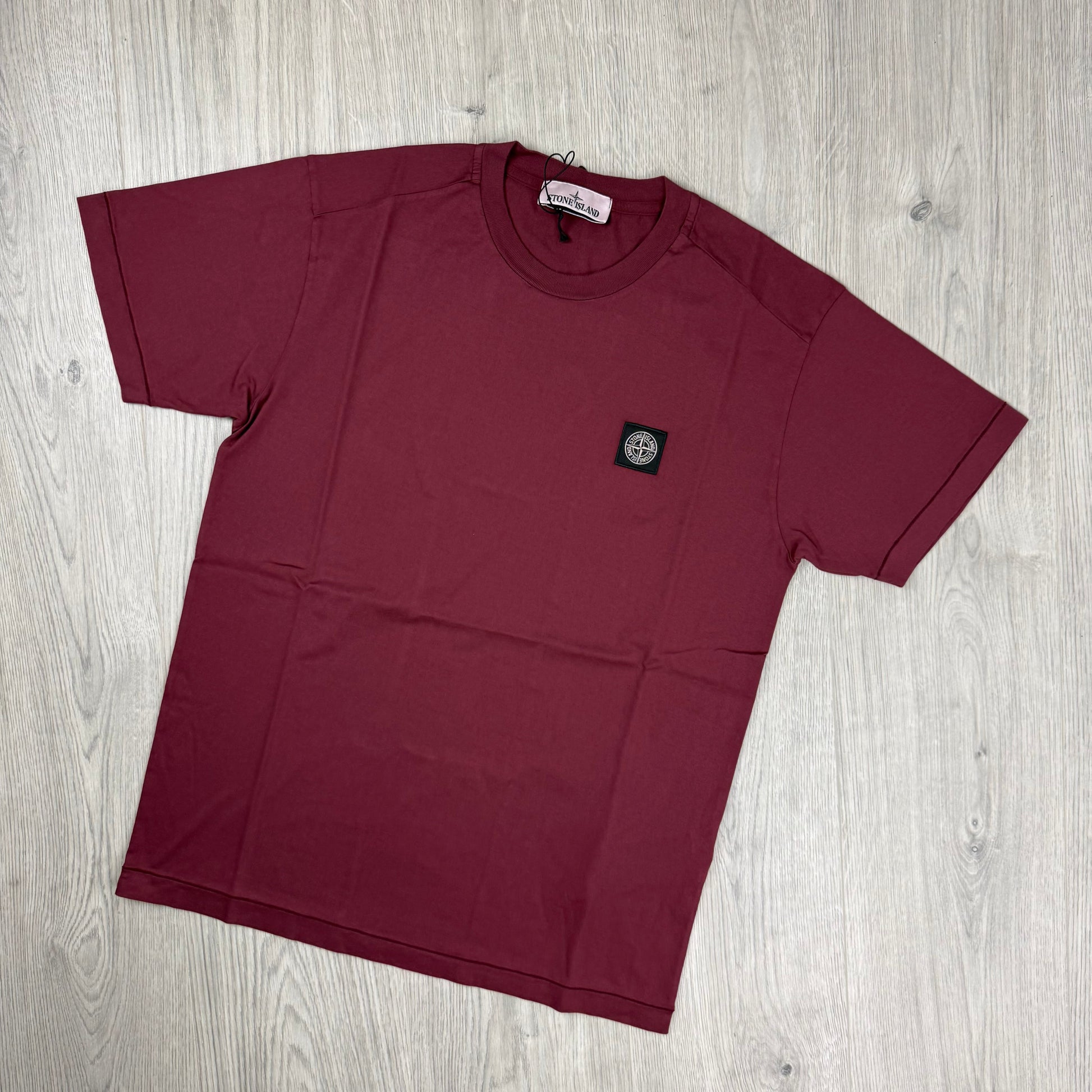 Men’s Stone Island T-shirt in Burgundy with patch logo on the chest
