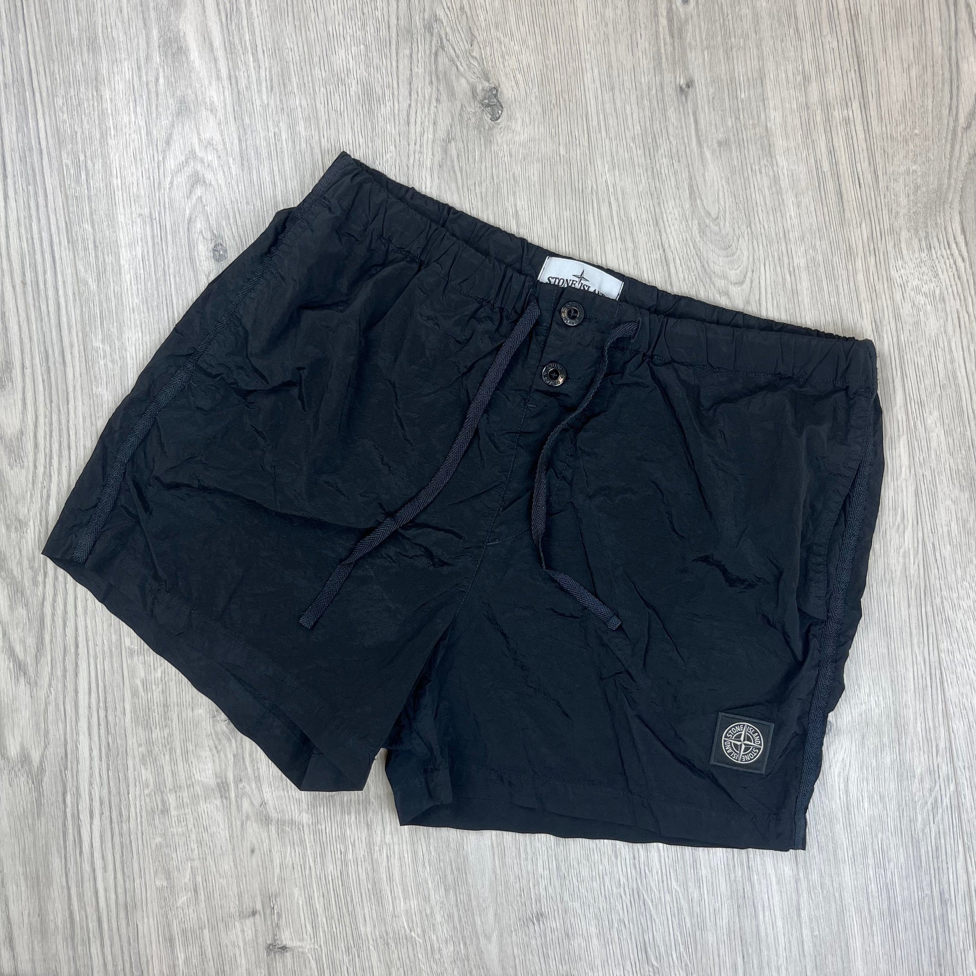 Stone Island ECONYL nylon swim shorts in black with patch logo and adjustable waist