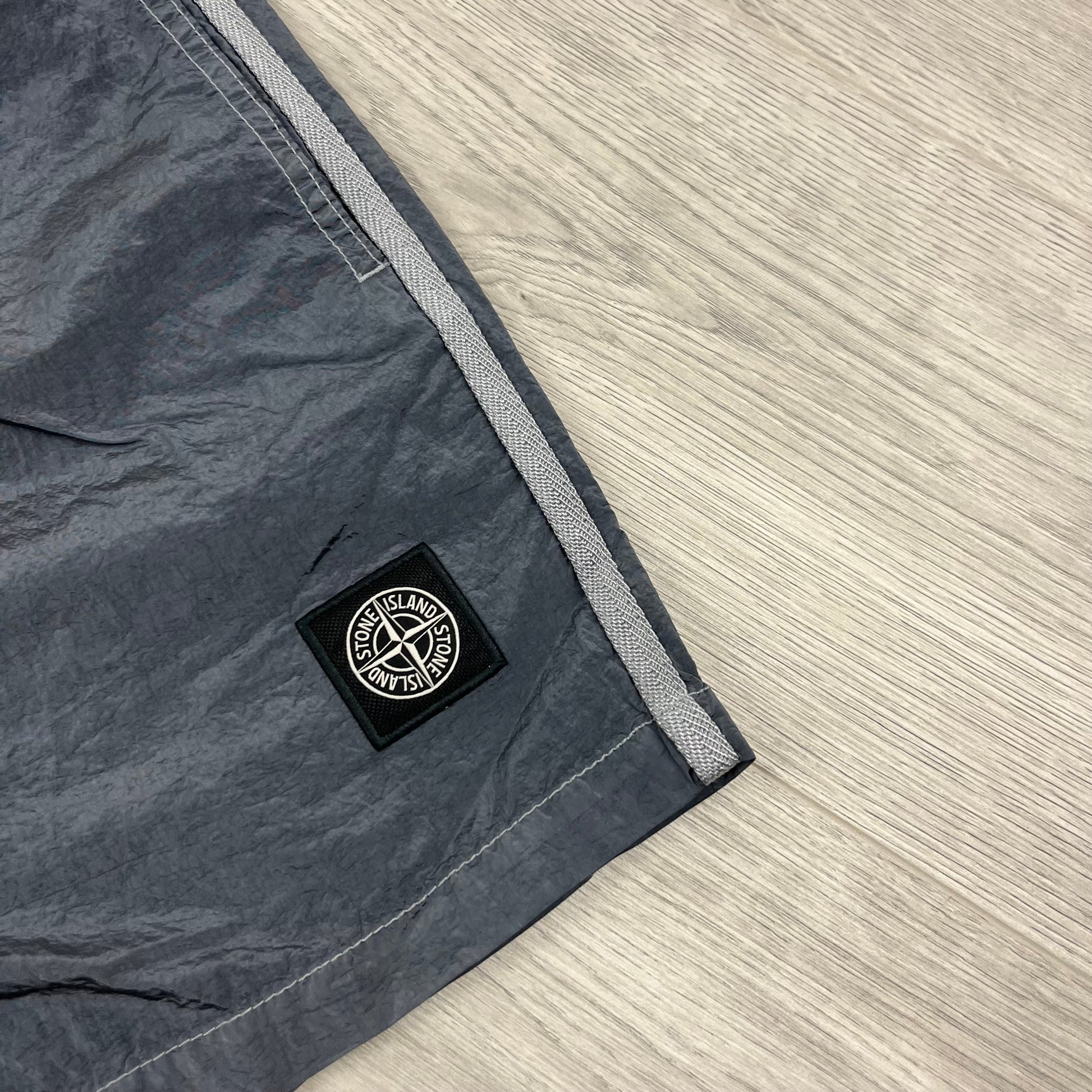 Stone Island ECONYL nylon swim shorts in Avio Blue with patch logo and adjustable waist