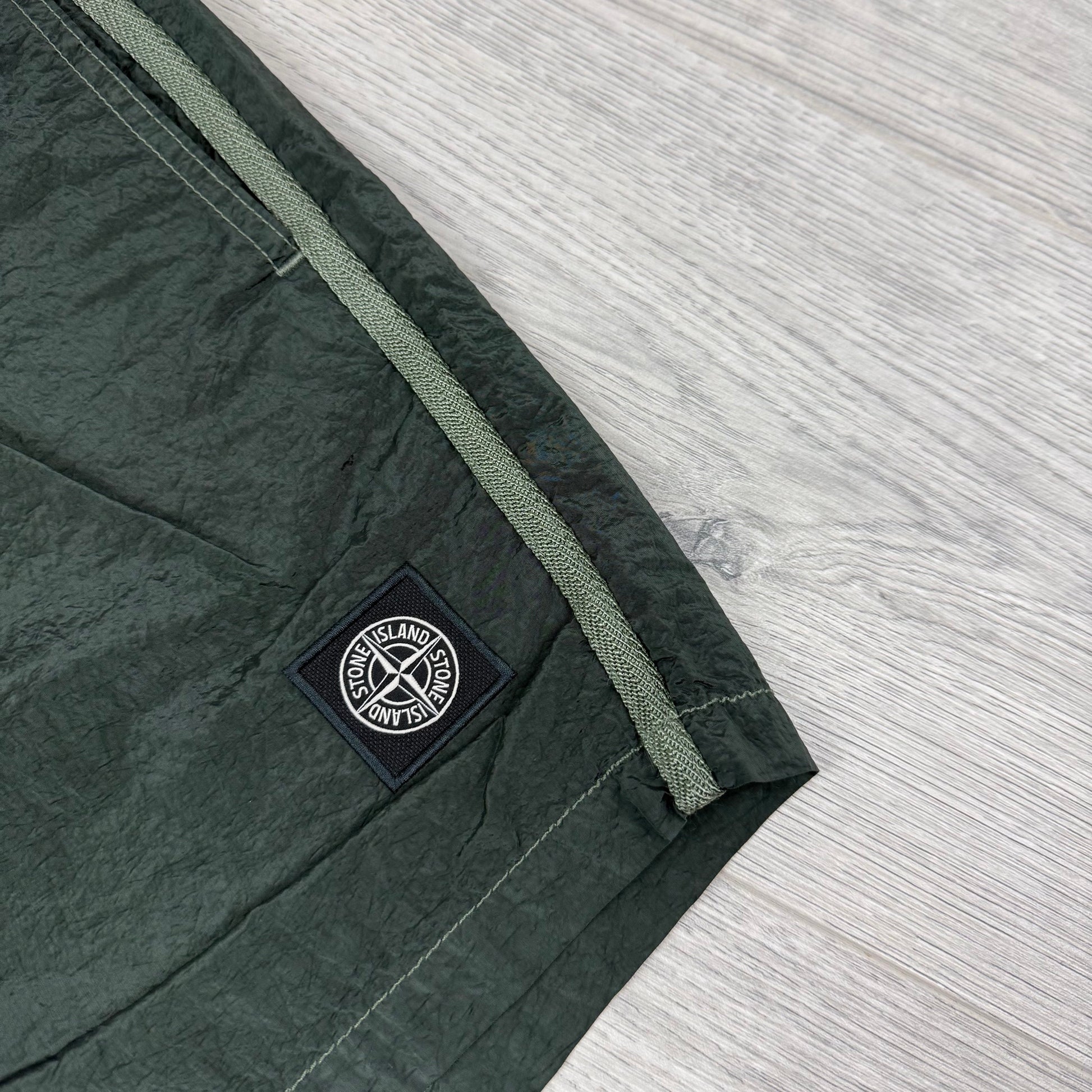 Stone Island ECONYL nylon swim shorts in Juniper Green with patch logo and adjustable waist