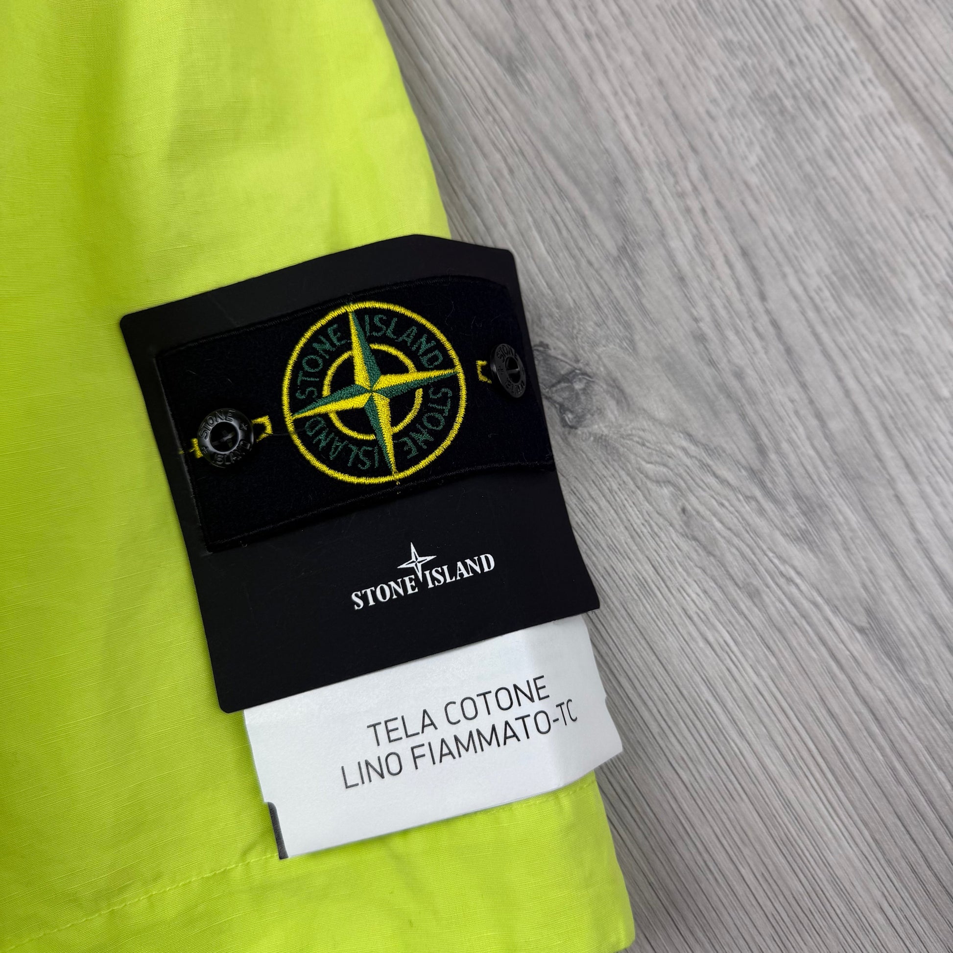 A standout outer layer from Stone Island, this Short Sleeve Shirt utilises the advanced Tela Cotone Lino Fiammato-TC composite—combining cotton and linen with a specialised flame-treatment and garment-dyed finish to deliver texture, depth and technical character.